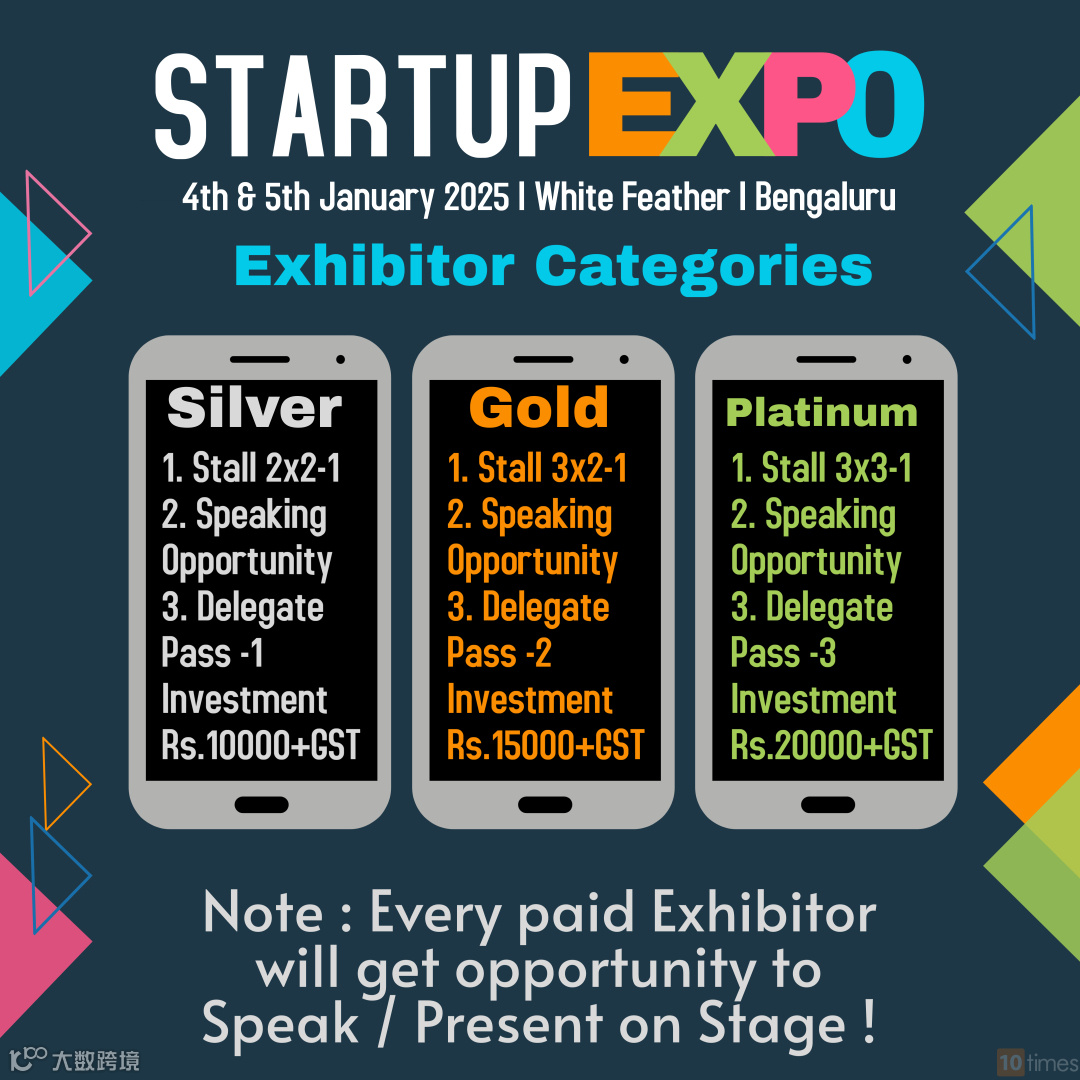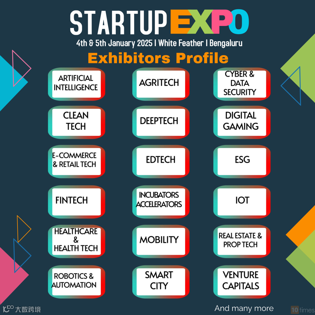 “推动创新,连接有远见者,塑造未来!” 欢迎莅临2025年创业展,地点:班加罗尔白羽电子城,时间:2025年7月11日至12日。2025年创业展不仅仅是一场盛会,更是初创企业和创业者们创新、联系与合作的平台。无论您是创始人、投资者 无论是赞助商还是代表,这里都有您的一席之地。为何参与?——参展商:向创业者、投资者和行业领袖展示您的创意和产品;代表:探索趋势,向专家学习,并与顶尖创新者建立联系;赞助商:提升您的品牌在初创企业生态系统中的知名度;演讲嘉宾:激发变革,引领重要对话。切勿错过这次参与变革的机会。让我们携手塑造初创企业的未来。