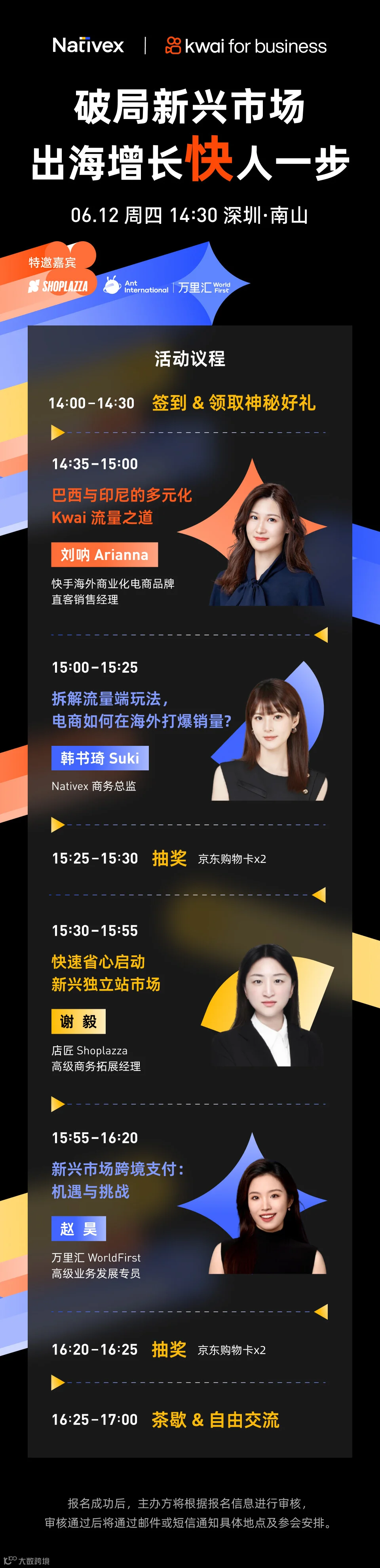 6月12日,Nativex 将联合 Kwai for Business,携手蚂蚁国际万里汇和店匠 Shoplazza,在深圳南山举办“破局新兴市场,出海增长快人一步”跨境电商沙龙,一同聚焦巴西及印尼市场的流量玩法和本地化破局思路,为跨境卖家带来更多出海干货,把握新一轮增长机遇。