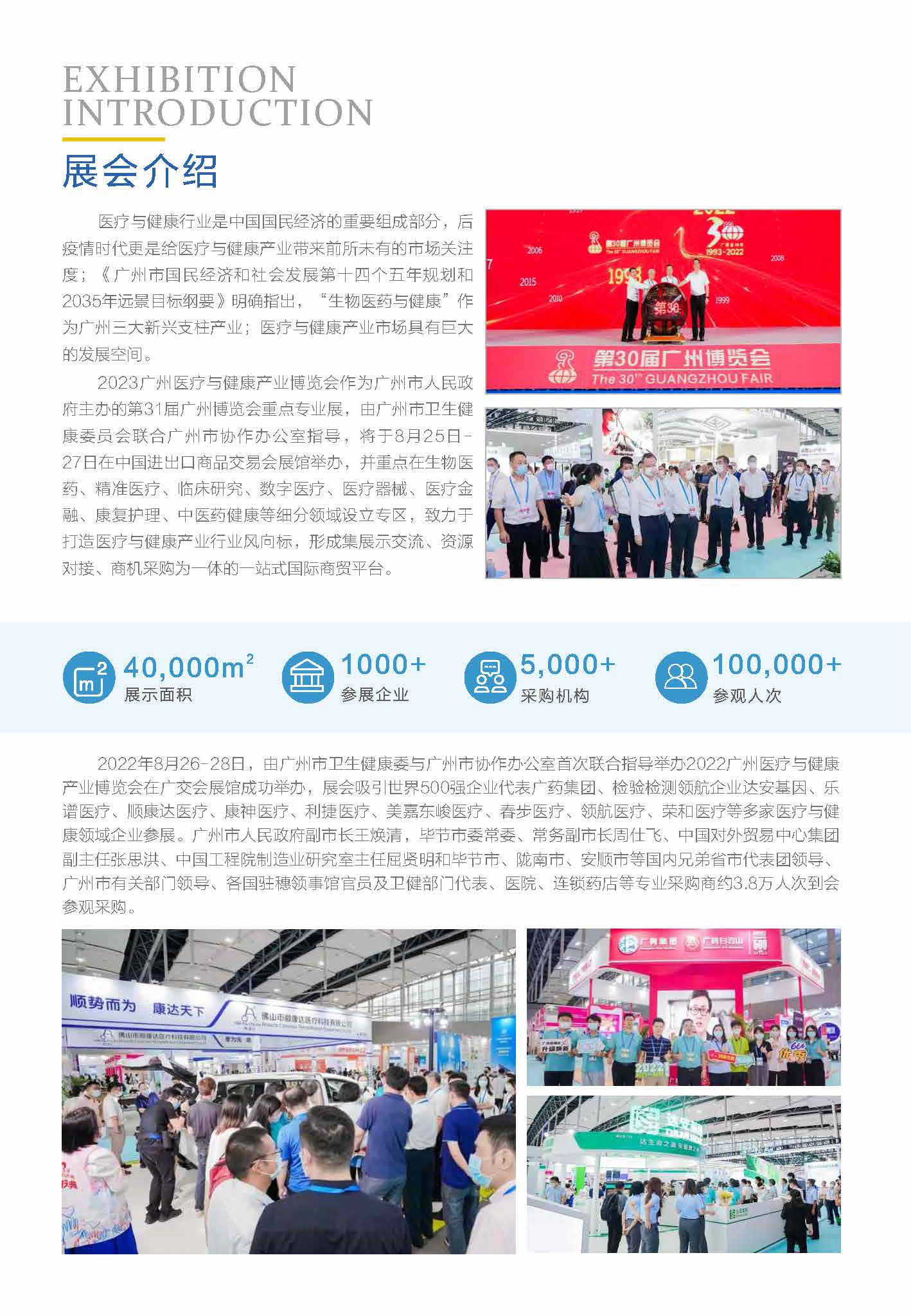 广州医疗与健康产业博览会展会吸引世界500强企业代表广药集团、检验检测领航企业达安基因、乐谱医疗、顺康达医疗、康神医疗、利捷医疗、美嘉东峻医疗、春步医疗、领航医疗、荣和医疗等多家医疗与健康领域企业参展。广州市人民政府副市长王焕清,毕节市委常委、常务副市长周仕飞、中国对外贸易中心集团副主任张思洪、中国工程院制造业研究室主任屈贤明和毕节市、陇南市、安顺市等国内兄弟省市代表团领导、广州市有关部门领导、各国驻穗领事馆官员及卫健部门代表、医院、连锁药店等专业采购商约3.8万人次到会参观采购。