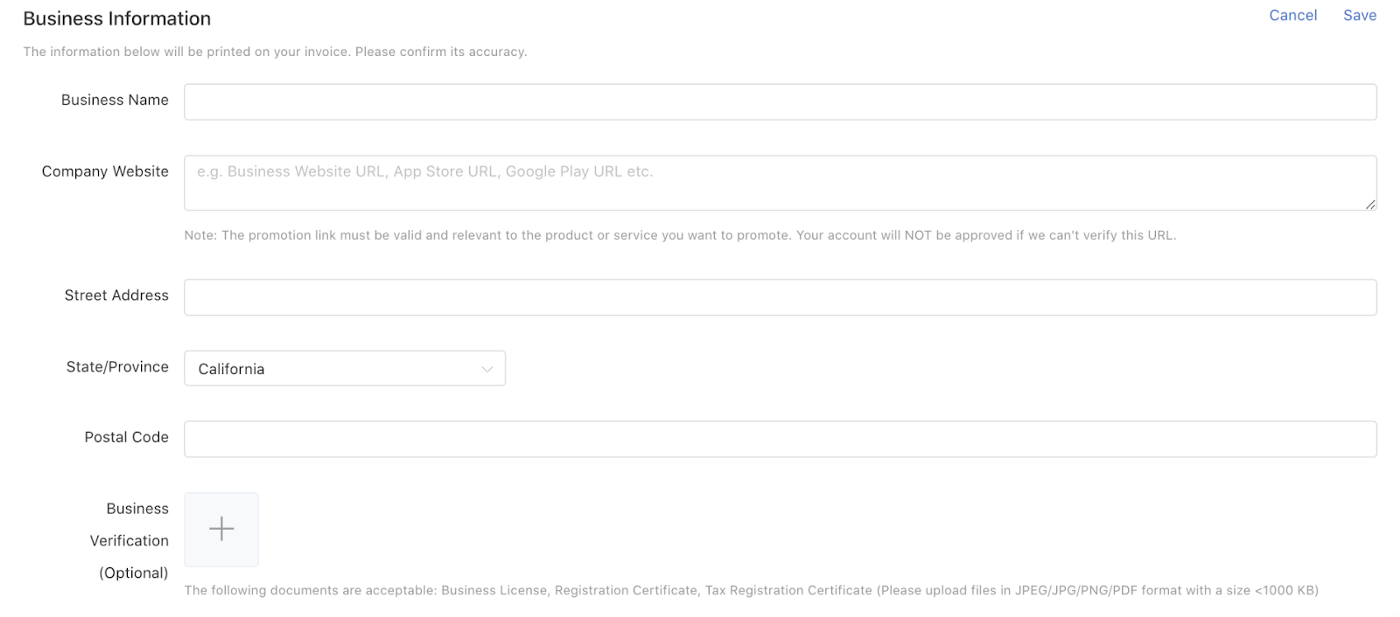 州/省:输入你的企业注册所在的州/省。
