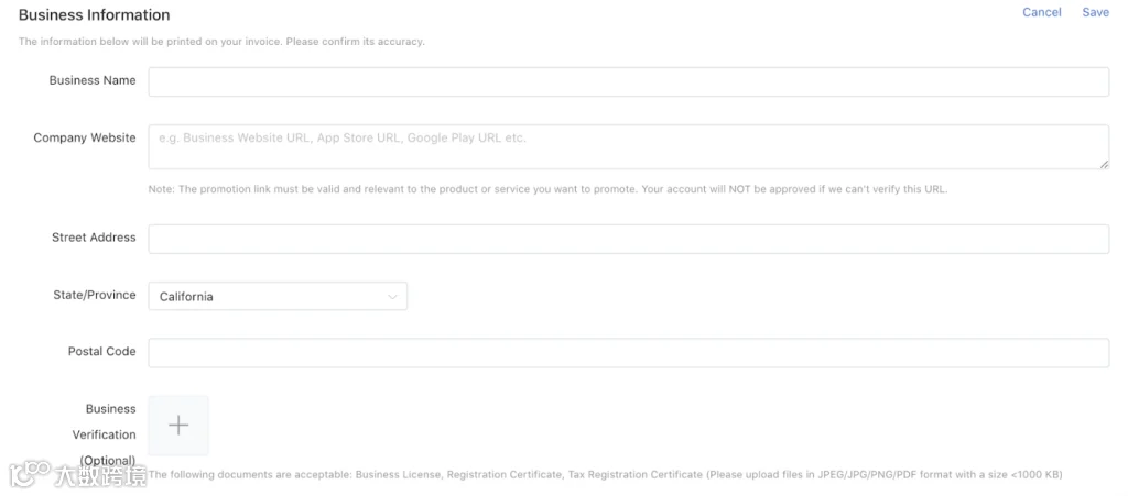 商业验证(可选):上传你用于在你所在地区开展业务或纳税的官方发布的号码。