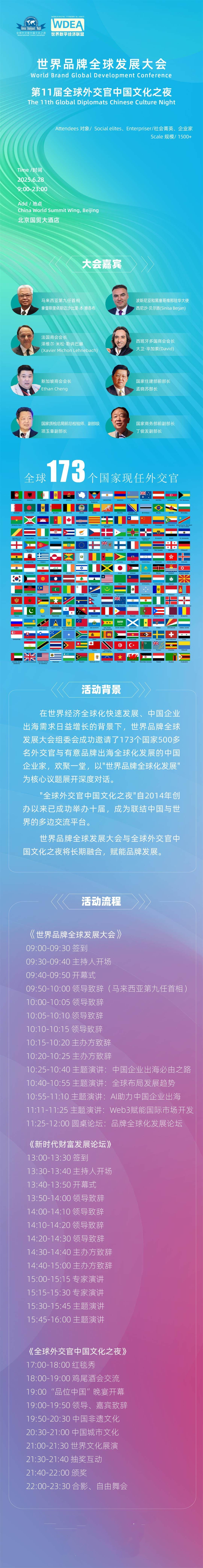 参会劵说明:参会券享受参加白天“世界品牌全球发展大会”会议活动,不含“第11届全球外交官中国文化之夜”晚宴。;