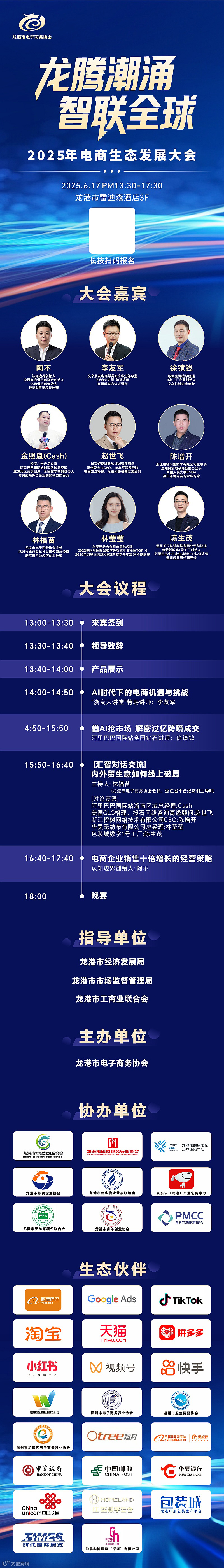 在全球数字化经济加速融合、国内国际双循环相互促进的背景下,电子商务作为连接内外贸的核心纽带,正迎来新的发展机遇与挑战。为探索电商生态协同发展路径,推动内外贸产业链、供应链深度融合,特举办本次大会,汇聚行业精英共商电商发展新图景。