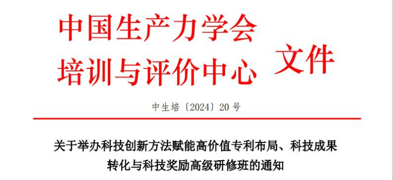 为进一步提升专利质量和专利转化运用,以有组织科研协同推进科技成果转化,提高科技成果转化率和科技奖励申报水平,我会决定于2024年10月和11月分别在长沙、厦门举办科技创新方法赋能高价值专利布局、科技成果转化与科技奖励高级研修班。