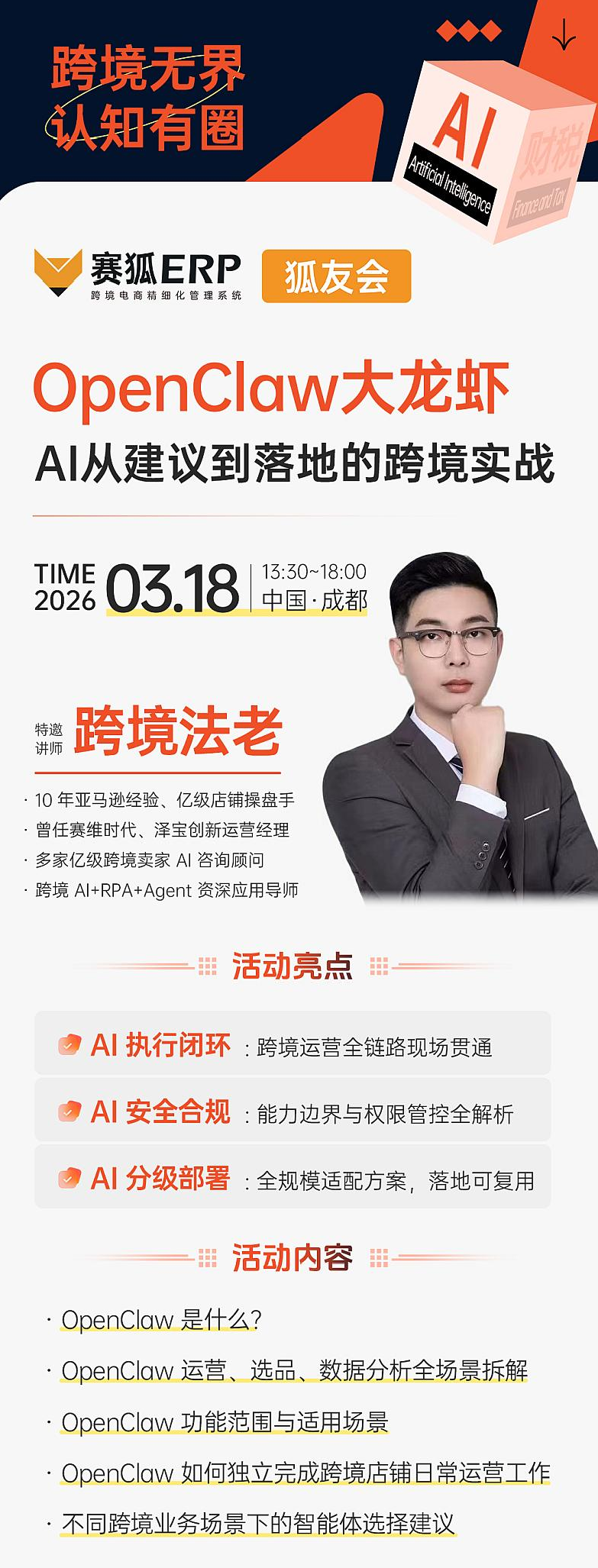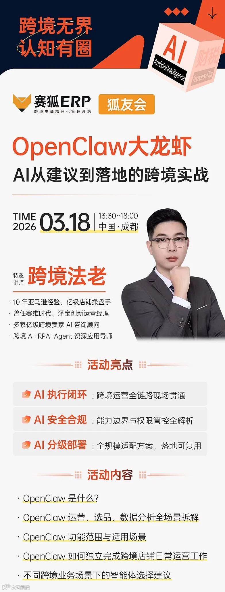 【狐友会-成都AI专场】OpenClaw大龙虾:AI从建议到落地的跨境实战
