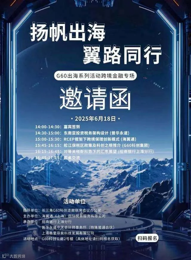 G60出海系列活动举办跨境金融专场,聚焦跨境金融领域,为出海企业提供专业交流与合作平台,探讨跨境金融趋势、策略与解决方案。