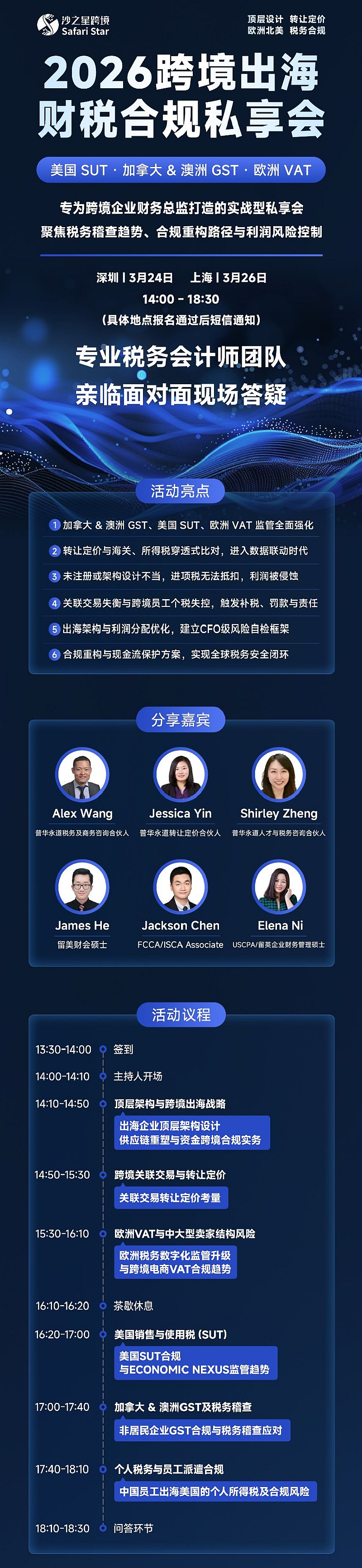 聚焦税务稽查趋势、合规重构路径与利润风险控制-2026沙之星跨境出海财税合规私享会