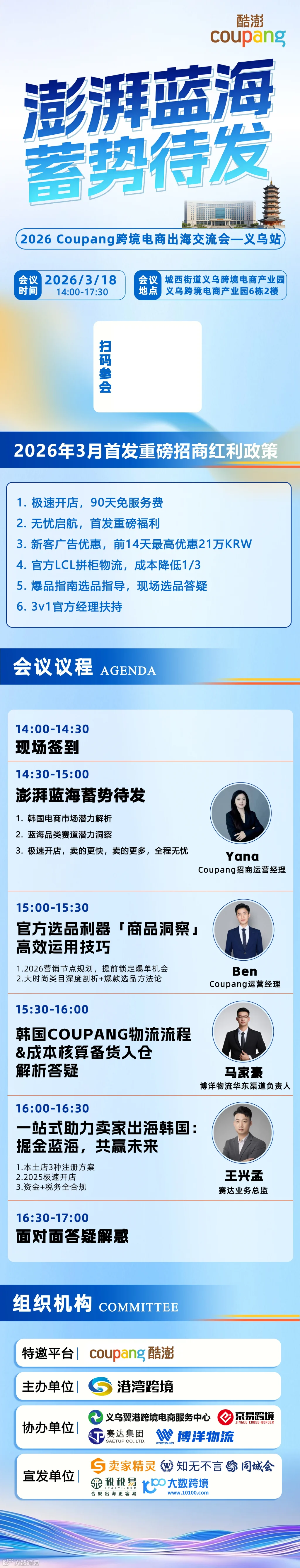 澎湃蓝海·蓄势待发:2026 Coupang跨境电商出海交流会一义乌站