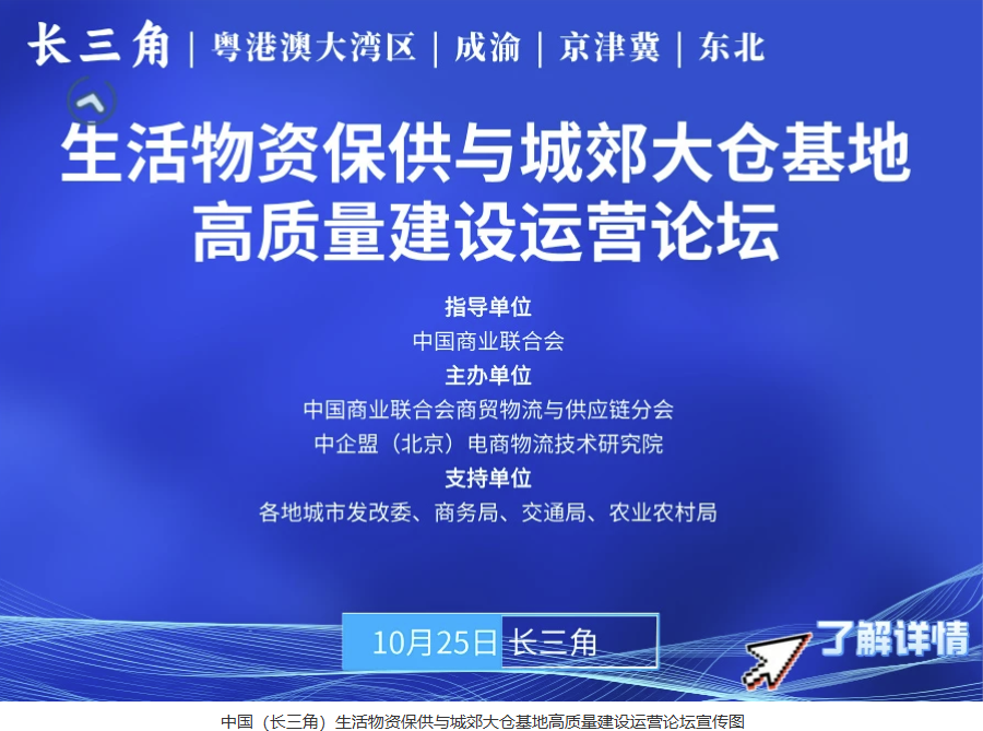 构建高效、安全、可持续的城市生活必需品流通保供体系,既是相关政府部门的重大课题,也是社会各界的责任与使命。为贯彻国家积极稳步推进超大特大城市“平急两用”公共基础设施建设,确保紧急条件下城市生活物资保供保畅,加快建设现代商贸流通体系。经中国商业联合会商贸物流与供应链分会、中企盟(北京)电商物流技术研究院研究决定,拟分别在长三角、粤港澳大湾区、成渝、京津冀以及东北地区召开生活物资保供与城郊大仓基地高质量建设运营论坛。论坛以“新质生产力助力城郊大仓基地高质量建设运营”为主题,旨在建设高效顺畅的现代商贸流通体系,助力我国生活物资保障体系建设,实现流通经济的创新与繁荣。