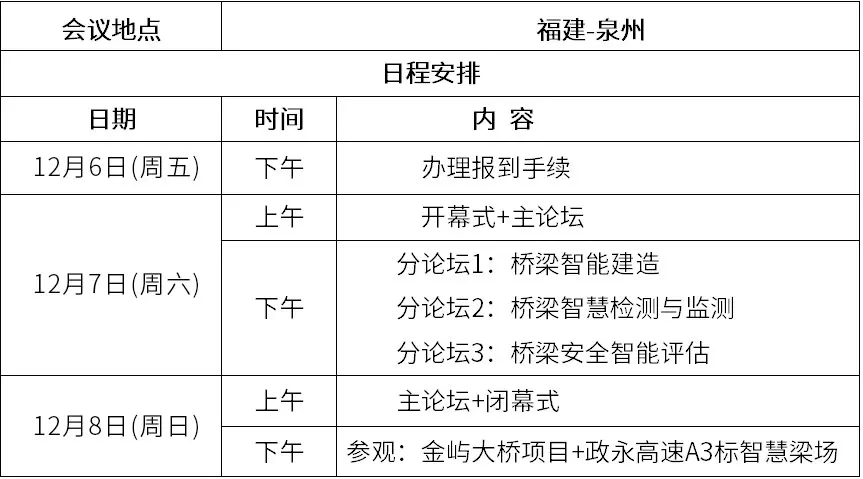 为进一步推进桥梁建造和运维技术智能化发展,推动桥梁建设领域数字化转型和高质量发展,兹定于2024年12月6-8日在福建泉州举办第二届全国桥梁智能建造与运维创新大会。本次大会由福建理工大学、泉州交通发展集团有限责任公司和桥梁工程与技术网联合主办,泉州市路桥发展集团有限公司、福建第一公路工程集团有限公司和北京国联视讯信息技术股份有限公司承办。