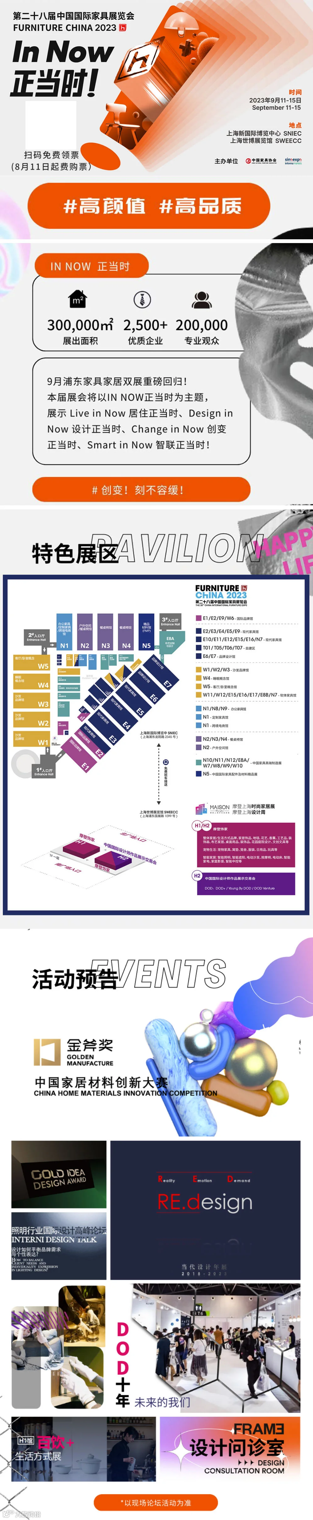 上海国际家具展(FURNITURE CHINA)是全球规模最大、最具影响力的家具展。双展展览规模超30万平方米,汇聚2500 +优质参展商,涵盖原创设计、高端定制、绿色智能、未来办公、精品户外、健康睡眠、创新材料、艺术软装、创意照明等,展示最新行业景观、全生活方式和多维灵感创意。