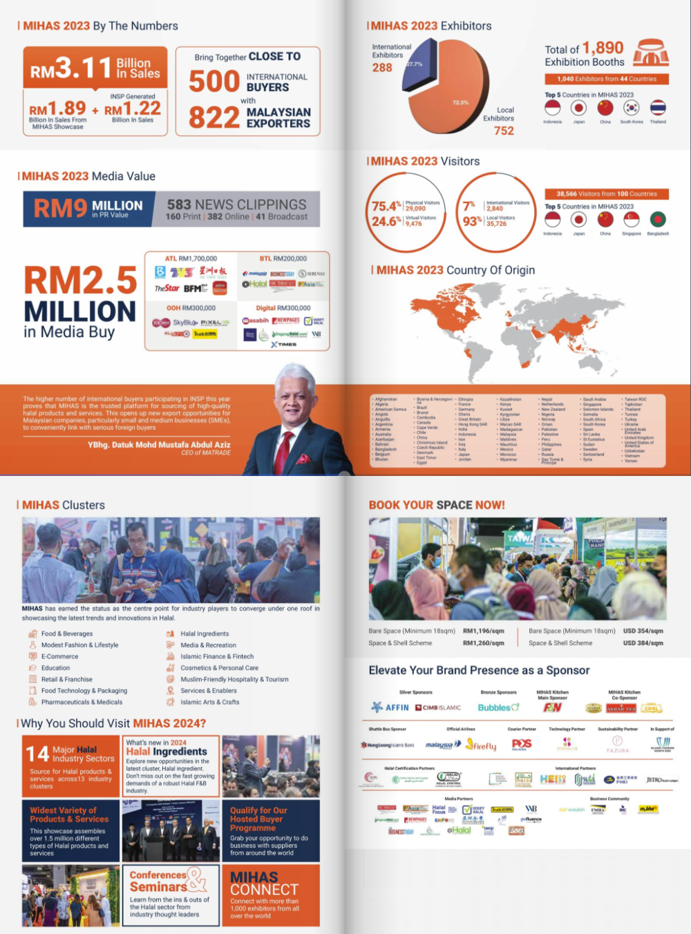 吉隆坡清真食品博览会(MIHAS)是世界上最大和最高规格的穆斯林清真产品贸易博览会。清真产业的第一商业平台,它将国际游客,贸易商带到同一个论坛。在全球清真市场、清真食品、伊斯兰金融、清真医药、清真化妆品、清真旅游、清真物流等领域提供机会。