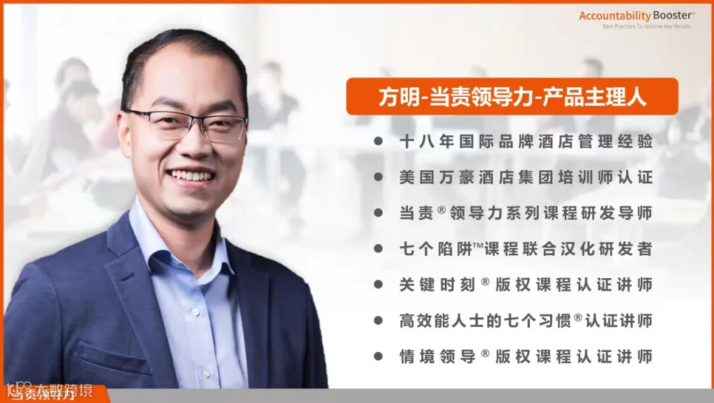 方老师深耕领导力发展多年,擅长通过犀利的引导与实战演练,帮助管理者通过“当责”拿到业务结果。