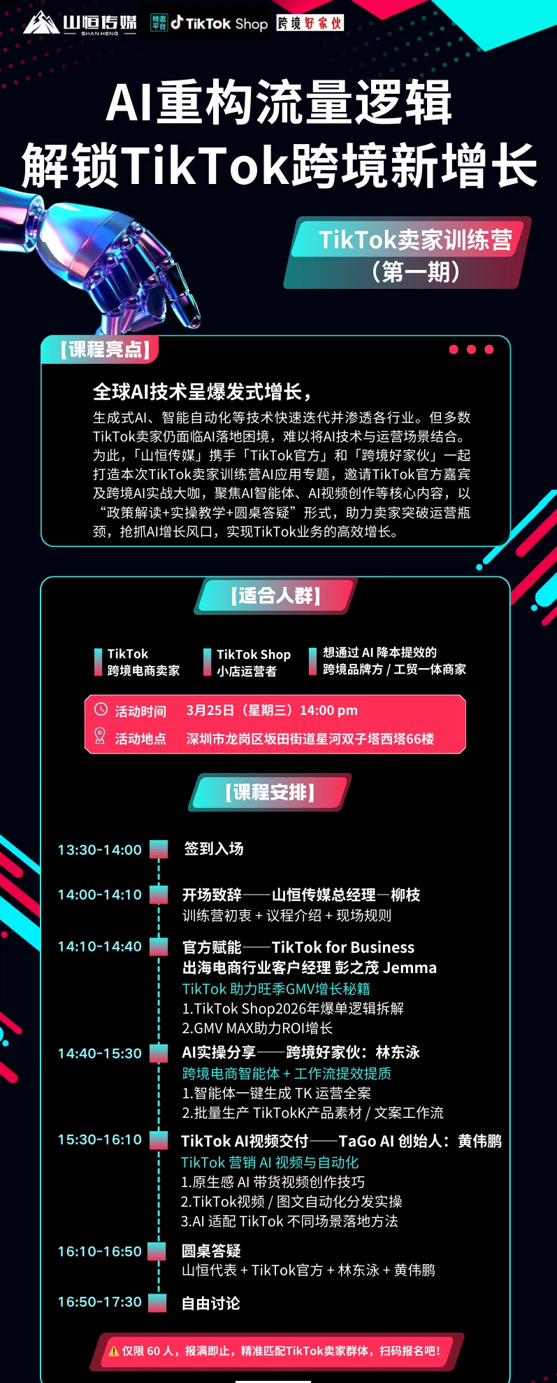 ⚠️ 仅限 60 人,报满即止,精准匹配 TikTok 卖家群体,扫码报名吧!