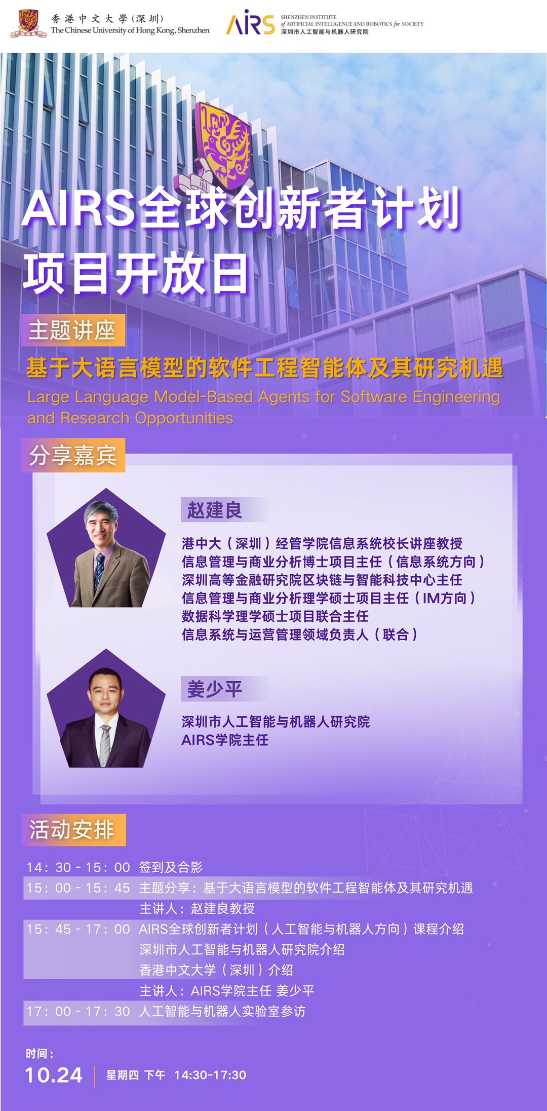 人工智能主题讲座+后E高管教育项目宣讲+人工智能实验室考察参访 +了解港中大(深圳)+AIRS科研项
