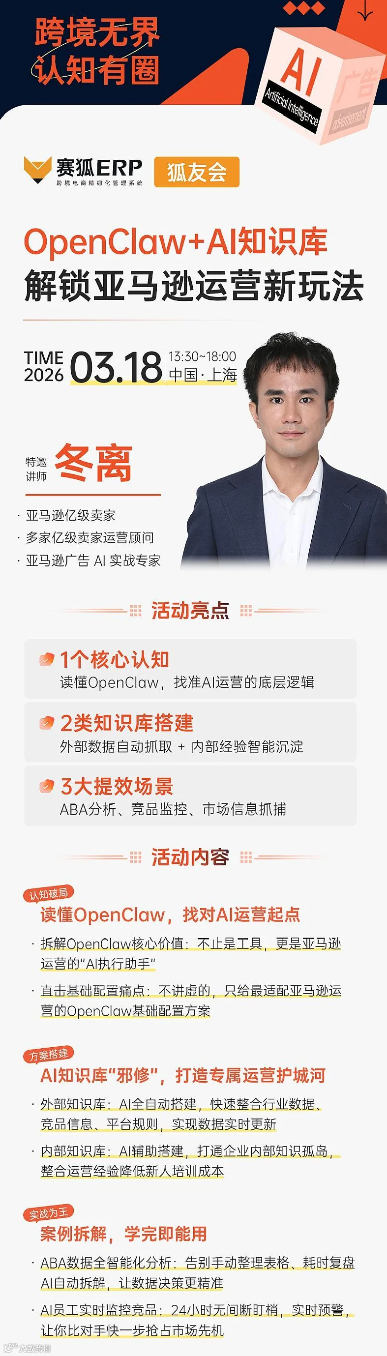 【狐友会-上海AI场】OpenClaw+AI知识库●解锁亚马逊运营新玩法 未开始 2026-03-1