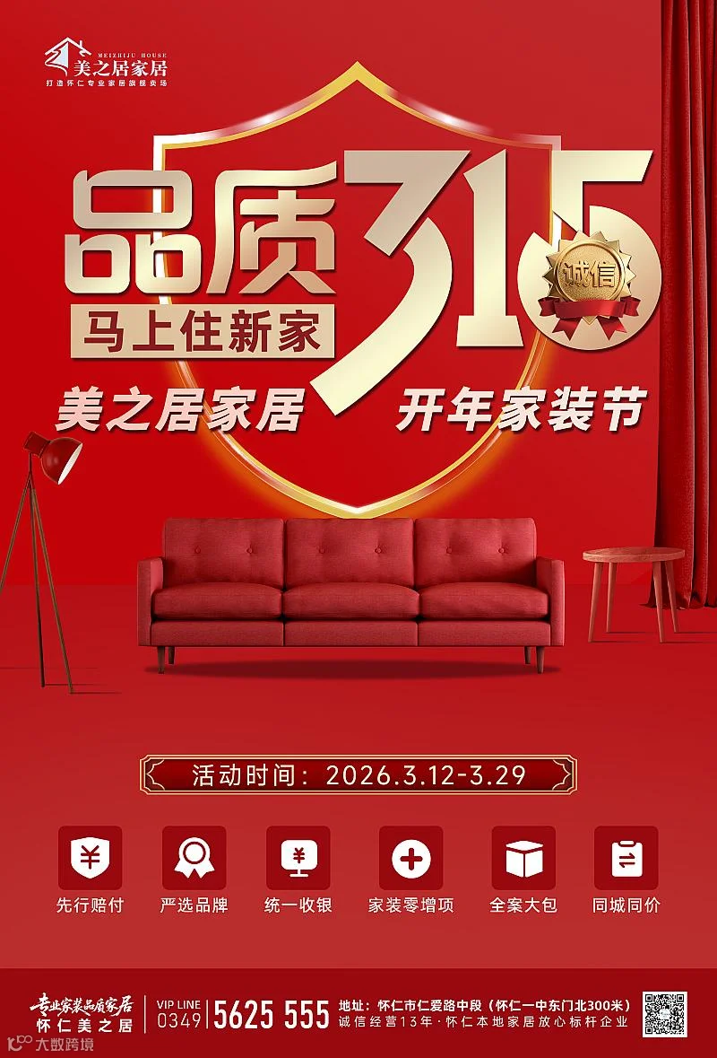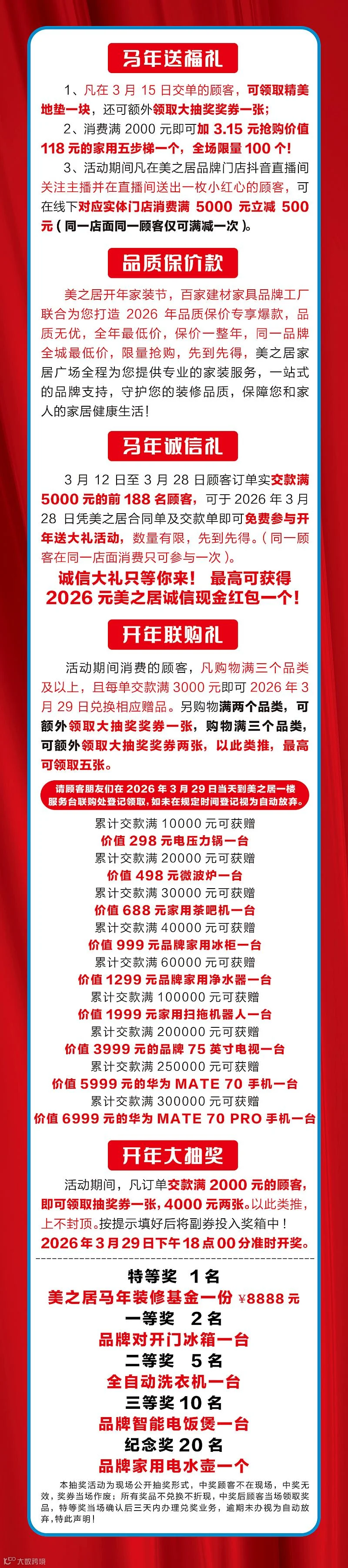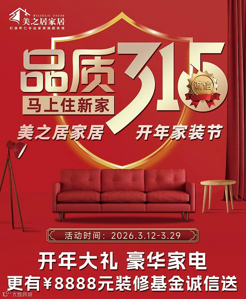 美之居开年家装节《品质315马上住新家》3月12日-3月29日豪华家电更有8888元装修基金诚信送!