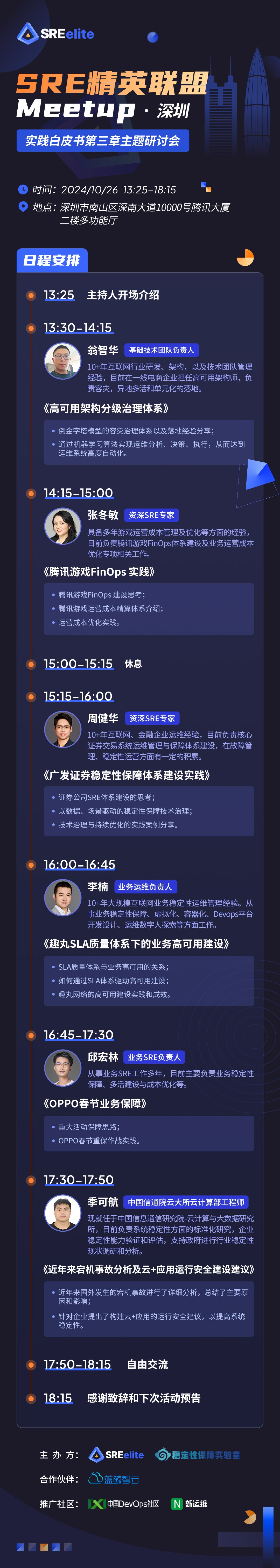 5.演讲3【15:15-16:00】:《广发证券稳定性保障体系建设实践》 — 周健华 (资深SRE专家)