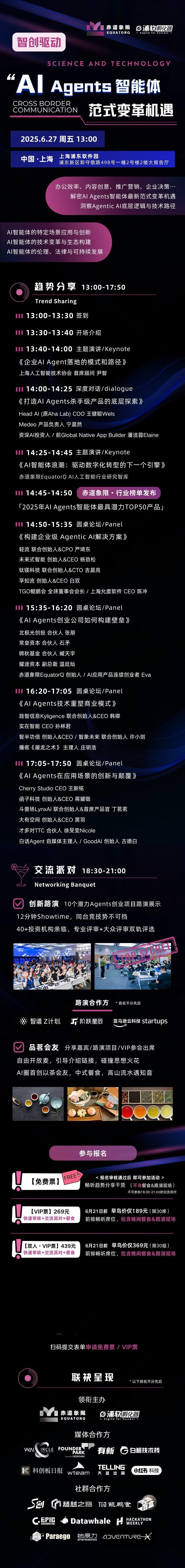 在自主申报和评委推荐基础上,结合30万+行业数据和产学研专家团评审,活动现场将重磅发布“2025年AI Agents智能体最具潜力TOP50产品” 榜单。荣登榜单的产品及其所属企业将获得行业内的高度认可与关注。