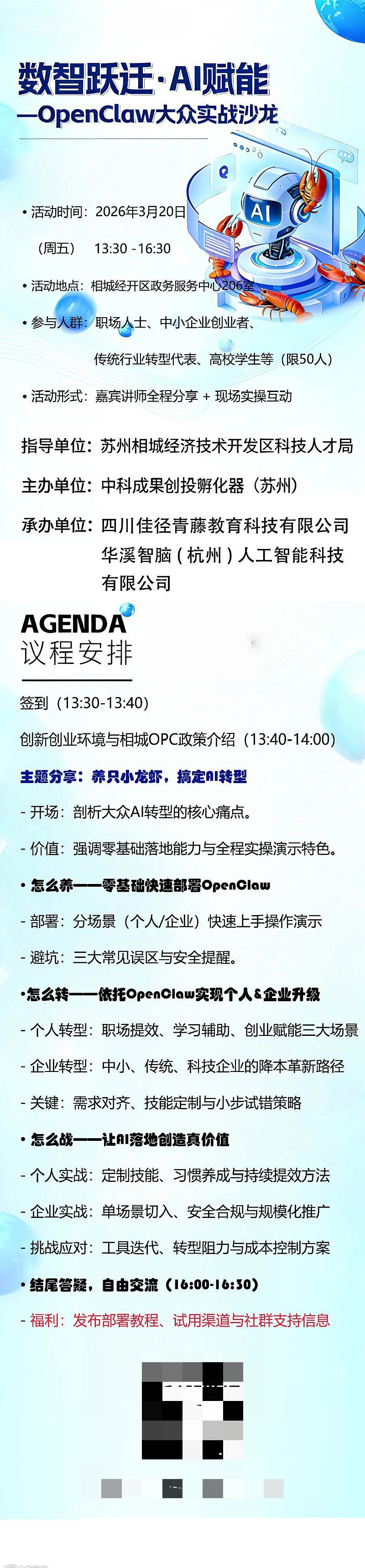 • 活动主题:数智跃迁·AI赋能”——OpenClaw大众实战分享沙龙