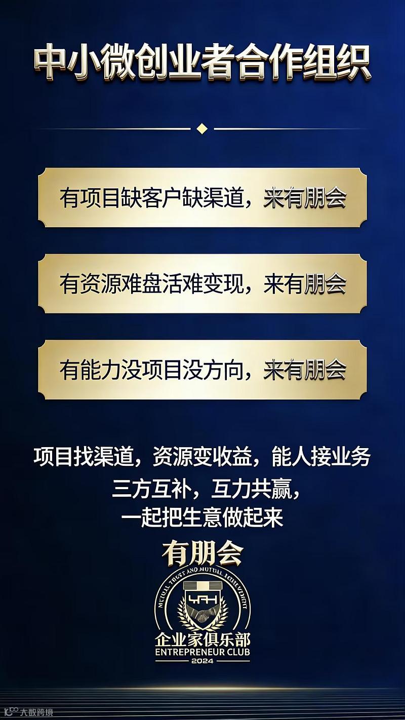 2026🔥有朋会企业家俱乐部重磅落地“共创”合作中心🔥全力赋能中小微创业者事业发展!参会地点:北滨路渔人湾码头2楼(导航到后,从停车坝“东西部(重庆)消费协作中心”立柱标识背后的楼梯上2楼,右边招商办公室进入)