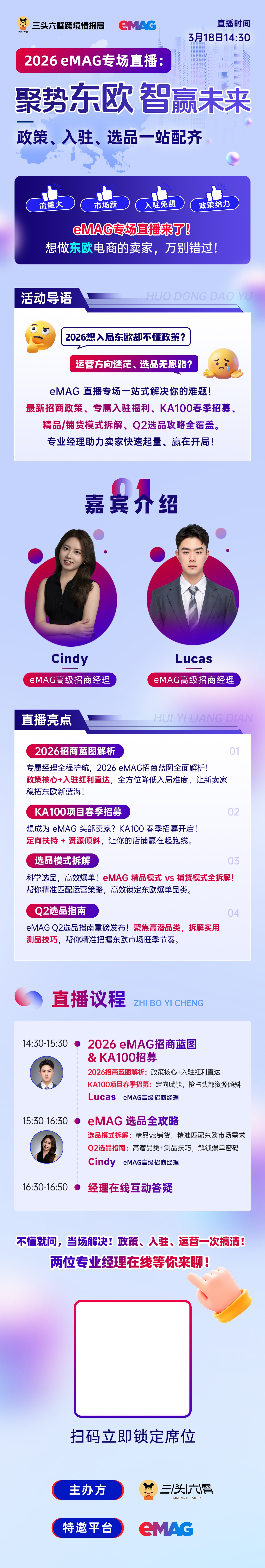 2026eMAG专场直播: 聚势东欧 智赢未来(政策、入驻、选品一站配齐)