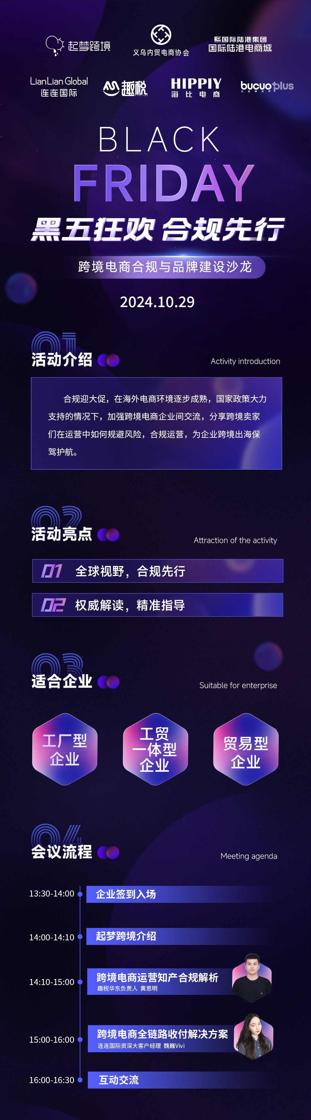 合规迎大促,在海外电商环境逐步成熟,国家政策大力支持的情况下,加强跨境电商企业间交流,分享跨境卖家们在运营中如何规避风险,合规运营,为企业跨境出海保驾护航。