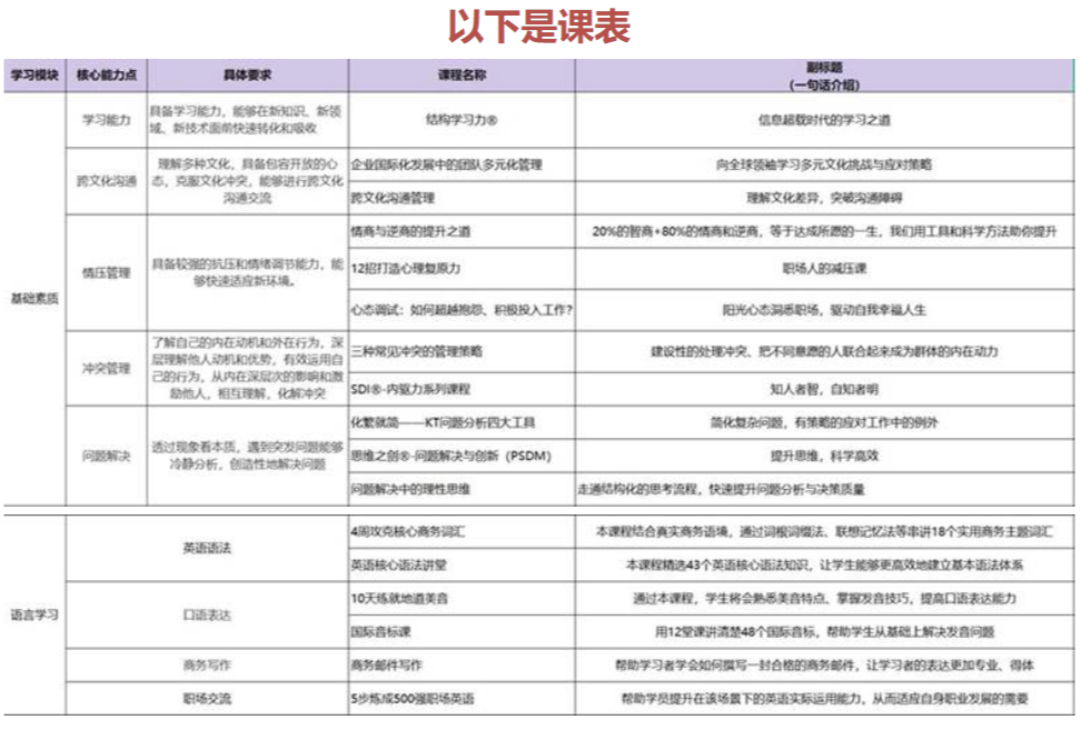 本课程从基础素质和语言学习两大模块赋能国际化人才,