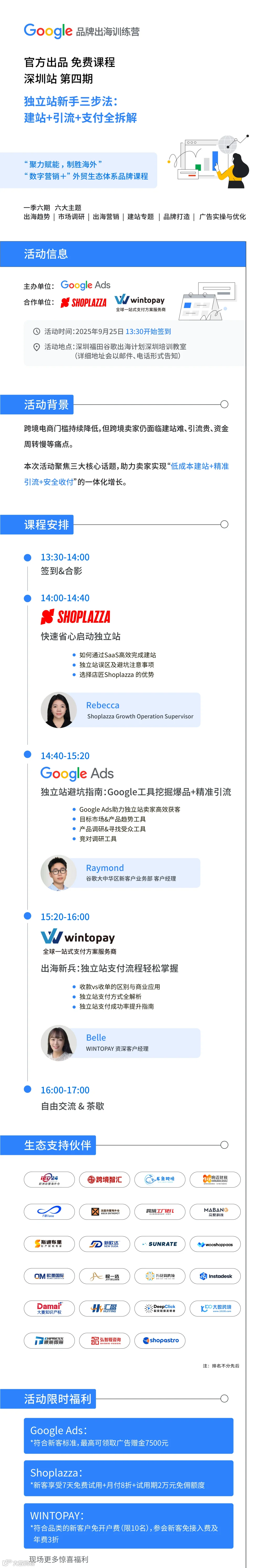 【活动延期】Google品牌出海训练营 · 深圳站|独立站沙龙