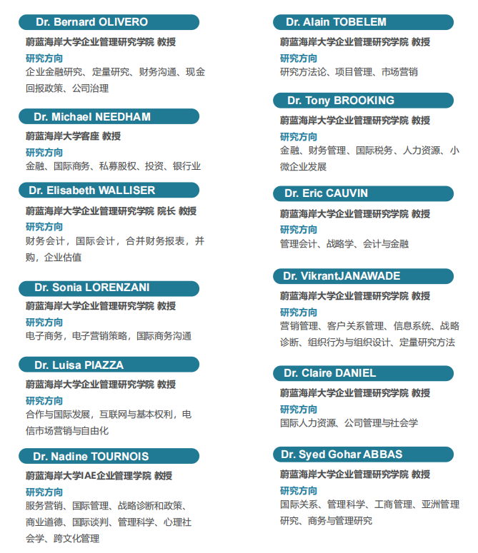 由蔚蓝海岸大学教授和国内985、211高校商学院教授共同授课。