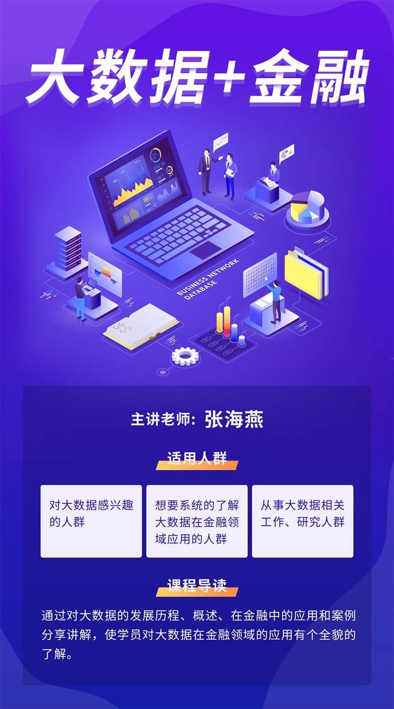 《大数据+金融》课程通过对大数据的发展历程、概述、在金融中的应用和案例分享讲解,使学员对大数据在金融领域的应用有个全貌的了解。