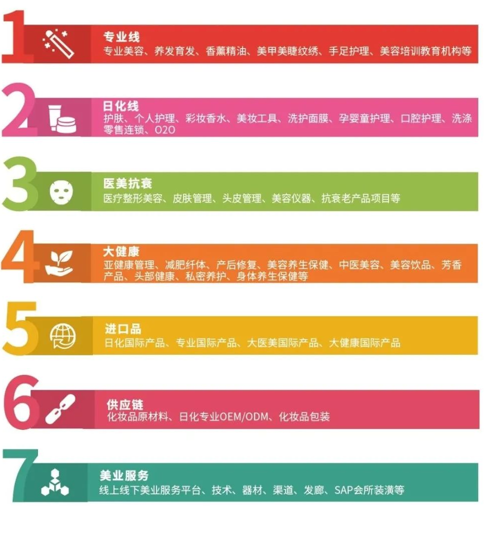 2025郑州国际美业博览会展示范围紧贴行业消费热点,涵盖专业线、日化线、大健康、进口产品、美发产业、母婴/产后护理、塑型瘦身、微电商、新零售、沐浴洗浴、口腔美容、包装材料类等,垂直细分美业分支。