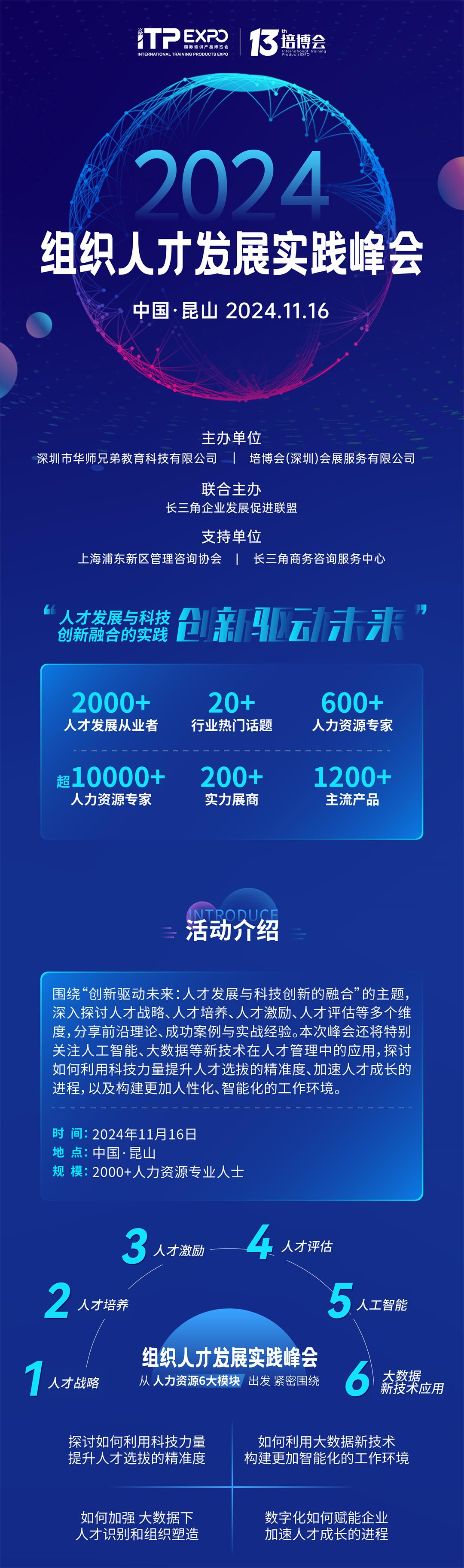 围绕“创新驱动未来:人才发展与科技创新的融合”的主题深入探讨人才战略、人才培养、人才激励、人才评估等多个维度,分享前沿理论、成功案例与实战经验。本次峰会还将特别关注人工智能、大数据等新技术在人才管理中的应用,探讨如何利用科技力量提升人才选拔的精准度、加速人才成长的进程,以及构建更加人性化、智能化的工作环境。