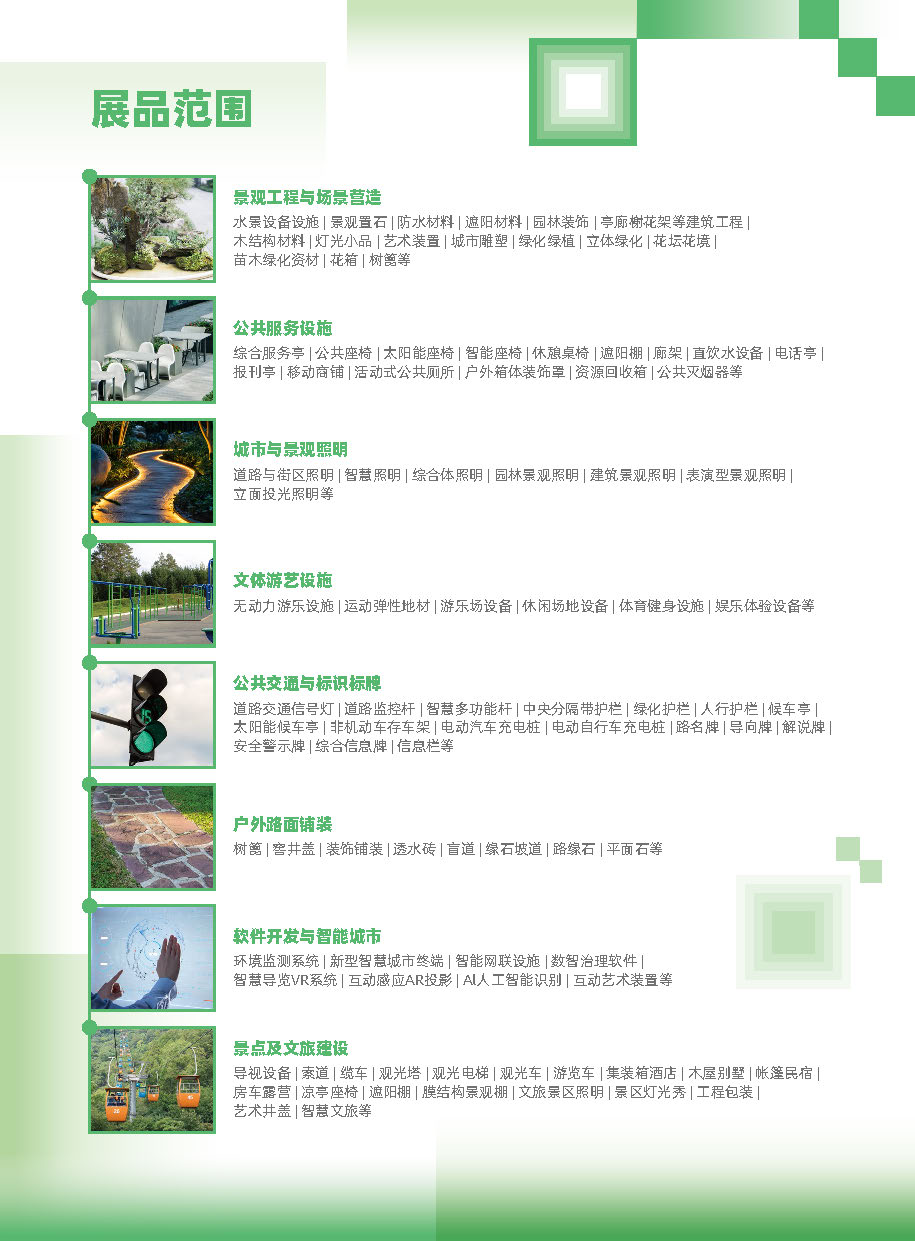 上海国际公共空间景观工程设计展(PSLE) 将着眼于户外和城市空间,整合丰富的客户资源为大众提供市政环境、城市空间再生等解决方案。展会不仅为施工方、设计院、市政采购、文旅及地产等终端买家提供全面的全套解决方案,也为公共空间下的企业提供了一个新品首发、商贸交流的平台。展会汇聚城市户外创意家具、文体游艺设施、户外铺装材料、景观照明、标识标牌、户外驿站、景观小品、景观雕塑、水景设备、园林建材及装饰、果皮箱、城市园艺等公共空间建设与运营领域全面展品,助力供需两端精准对接,全力构建和拓展城市空间的大生态融合。