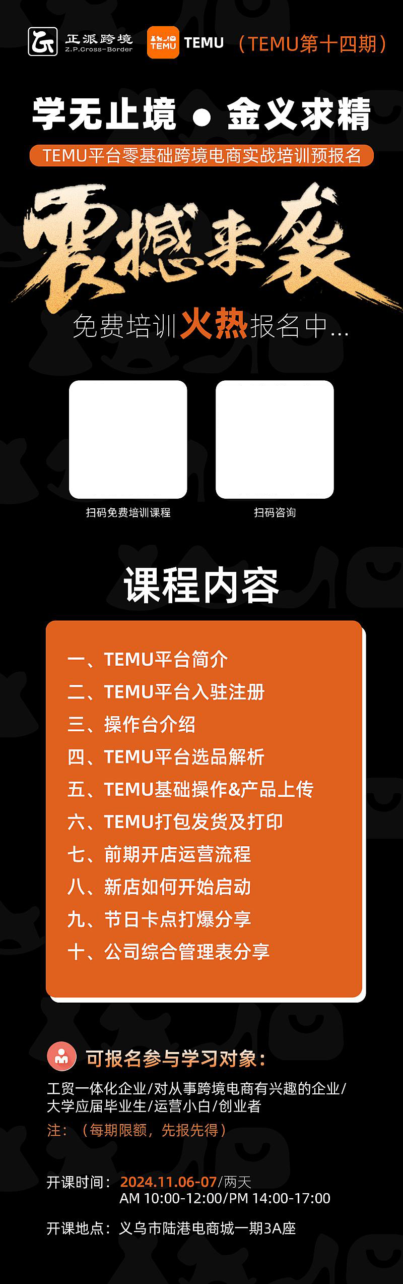 11月6-7日2天线下【TEMU】学无止境●金义求精 0基础跨境电商TEMU培训班第14期
