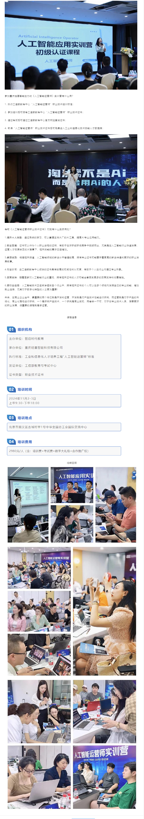 重庆硅基智能 【工信人才培养工程】**期《人工智能运营师》实训营北京站11月2-3日开始报名