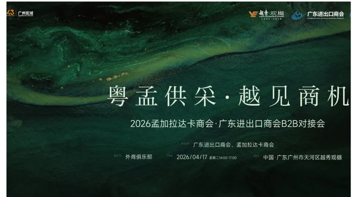 为进一步深化中国广东省与孟加拉国的经贸合作,搭建粤孟两地企业精准供需对接平台,挖掘双边贸易与投资合作潜力,广东进出口商会联合孟加拉达卡商会,定于 2026 年 4 月 17 日在广州举办「粤孟供采・越见商机」B2B 经贸对接会。