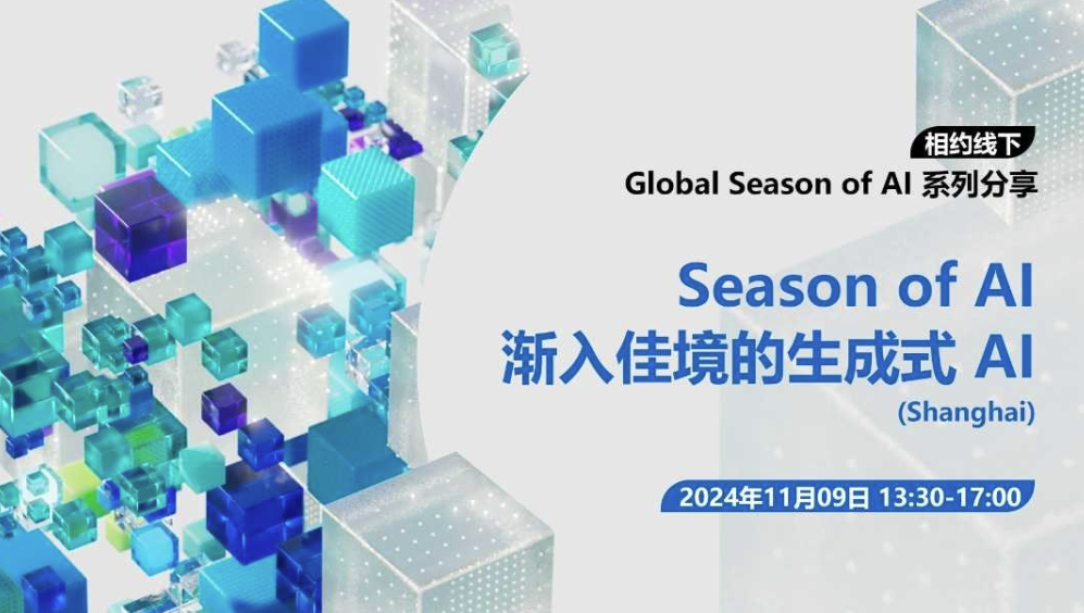 在这个收获的季节,欢迎和我们一起了解渐入佳境的生成式 AI!11月9日,新一季的 Global Season of AI 上海站,我们将主要围绕生成式 AI 实际落地的架构,如 Microsoft Copilot、Github Copilot、Copilot Stack 等等,和几位微软最有价值专家一起,聊聊生成式 AI 的最新实践。加入我们,让生成式 AI 变成我们强大而不可获缺的助手,展现出更强的生产力!