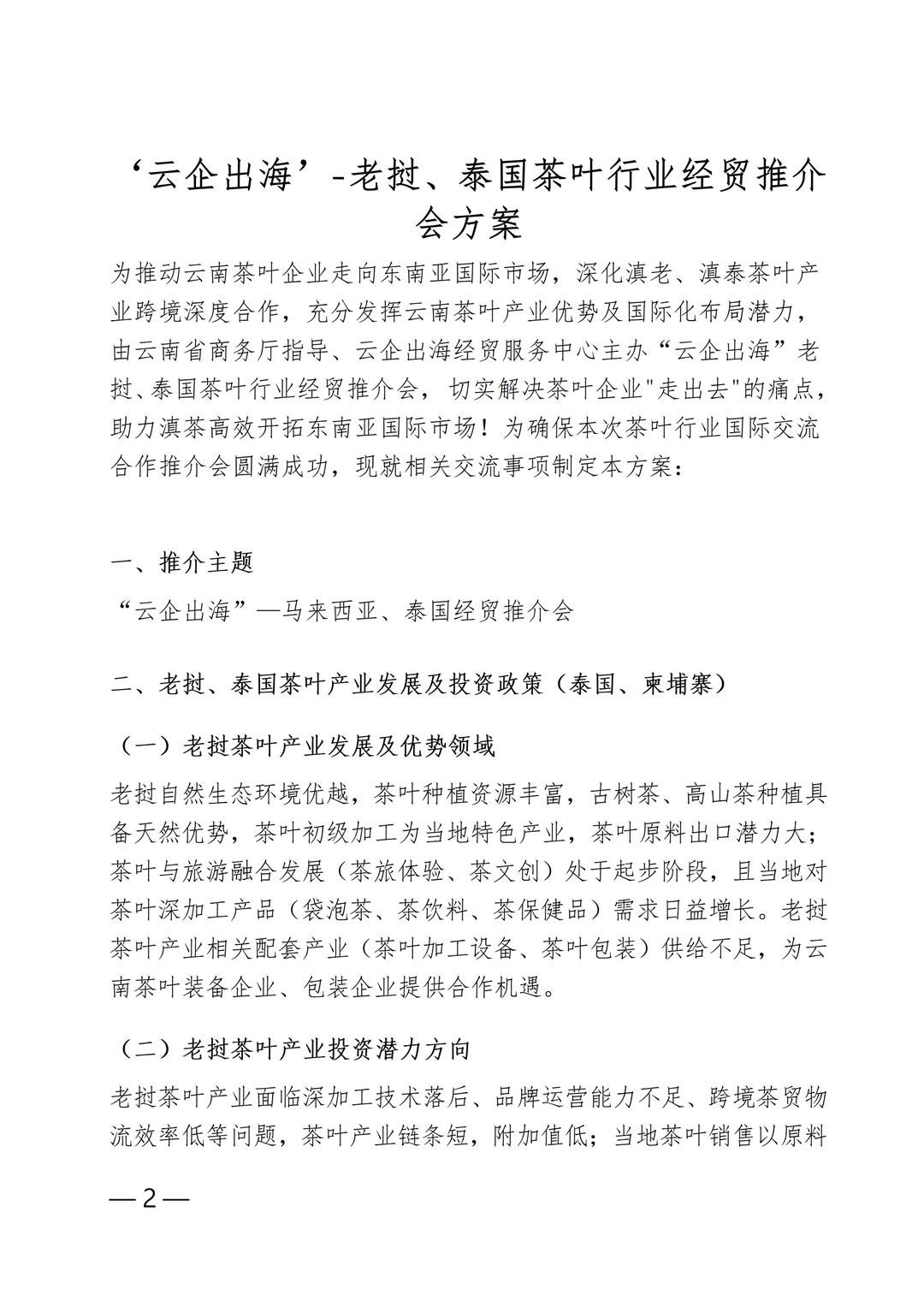 ‘云企出海’-老挝、泰国茶叶行业经贸推介会