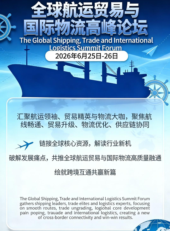 2026 年 6 月 25日-26 日,美谬咨询将在上海举办全球航运贸易与国际物流高峰论坛,覆盖国际航运、跨境物流、智慧港口与绿色物流四大核心领域。500 + 参会者将包括航运巨头、港口集团、跨境物流企业、贸易服务商及政策专家,深度探讨全球航运格局变化、RCEP 贸易机遇、数字化通关与低碳转型三大行业核心议题。会议将帮助参会者把握全球物流趋势、优化供应链成本与效率,对接头部物流与贸易资源,提升企业全球化运营竞争力。