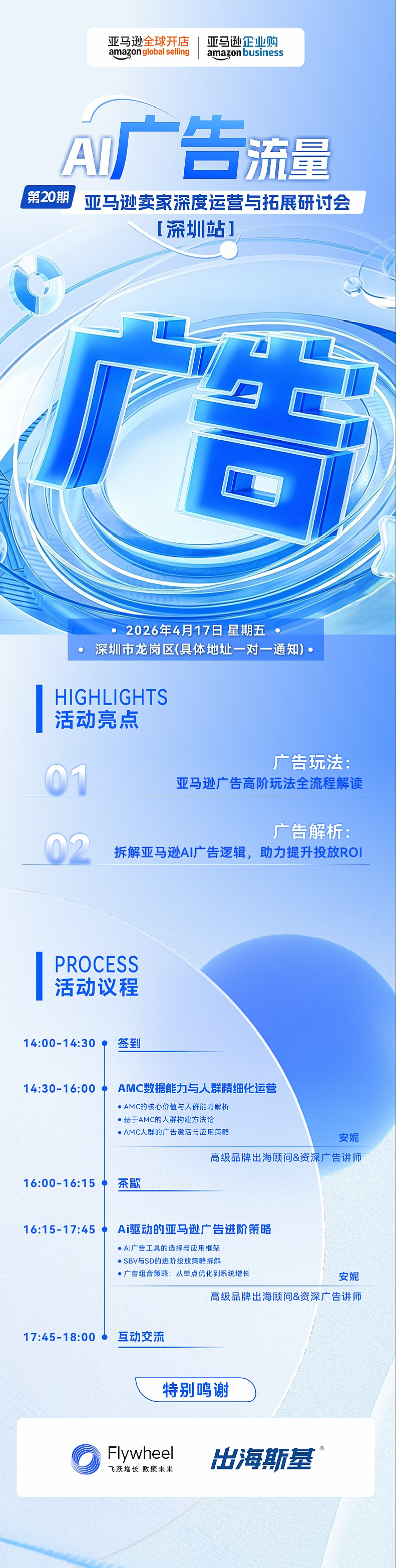 【AI 广告 流量 】亚马逊卖家深度运营与拓展研讨会第二十期-深圳站