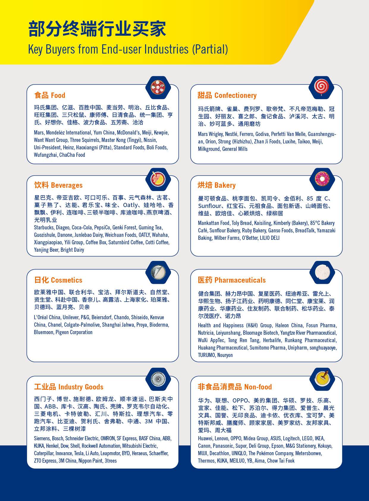 包装制品: 食品饮料加工及包装机械、医药化妆品加工及包装机械、非食品消费品及工业品加工及包装机械、糕点糖果及烘焙食品加工及包装机械