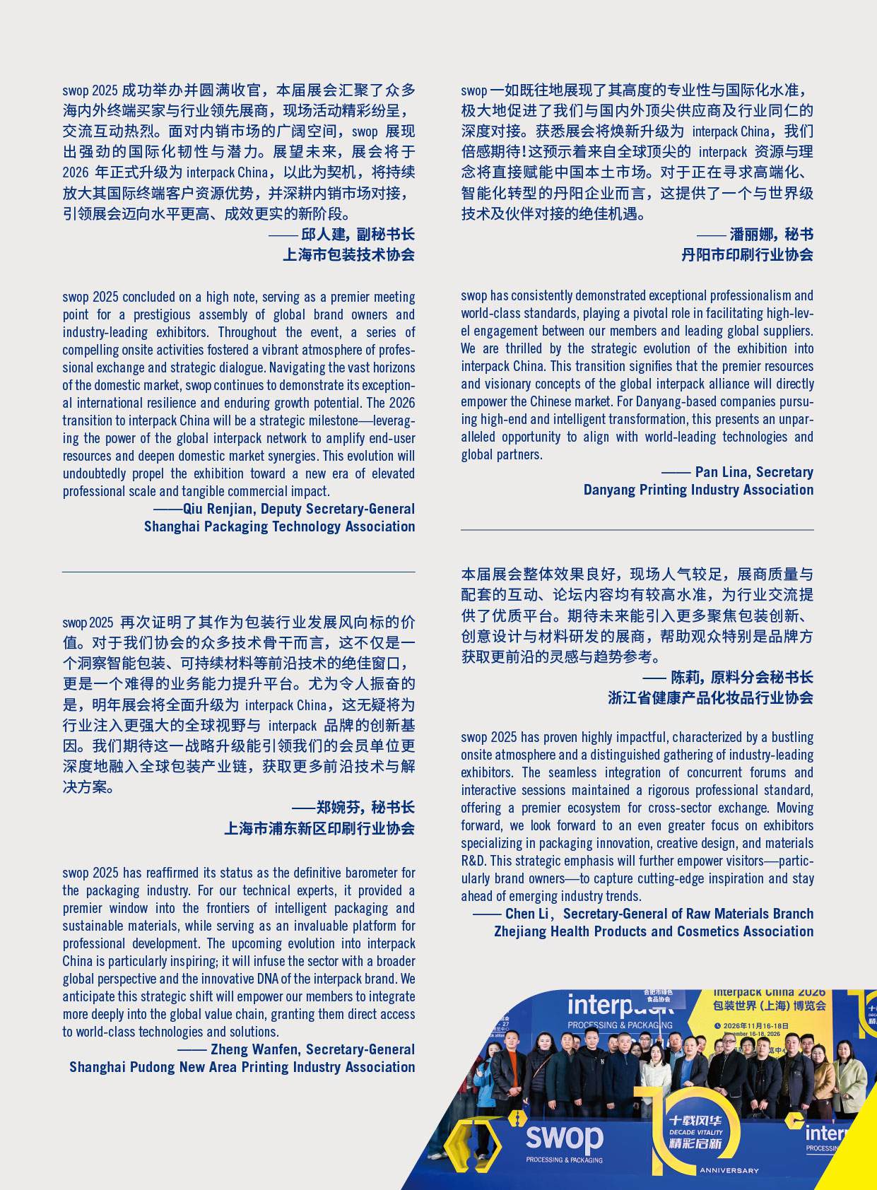 swop包装世界上海博览会加入了interpack联盟,现在正以全新的面貌走向下一个发展阶段——品牌正式升级为interpack China。这一变化不仅体现了杜塞尔多夫展览集团在国际包装产业链中的战略定位,也向全球市场传达了杜塞尔多夫展览集团对中国包装行业的重视和信心。