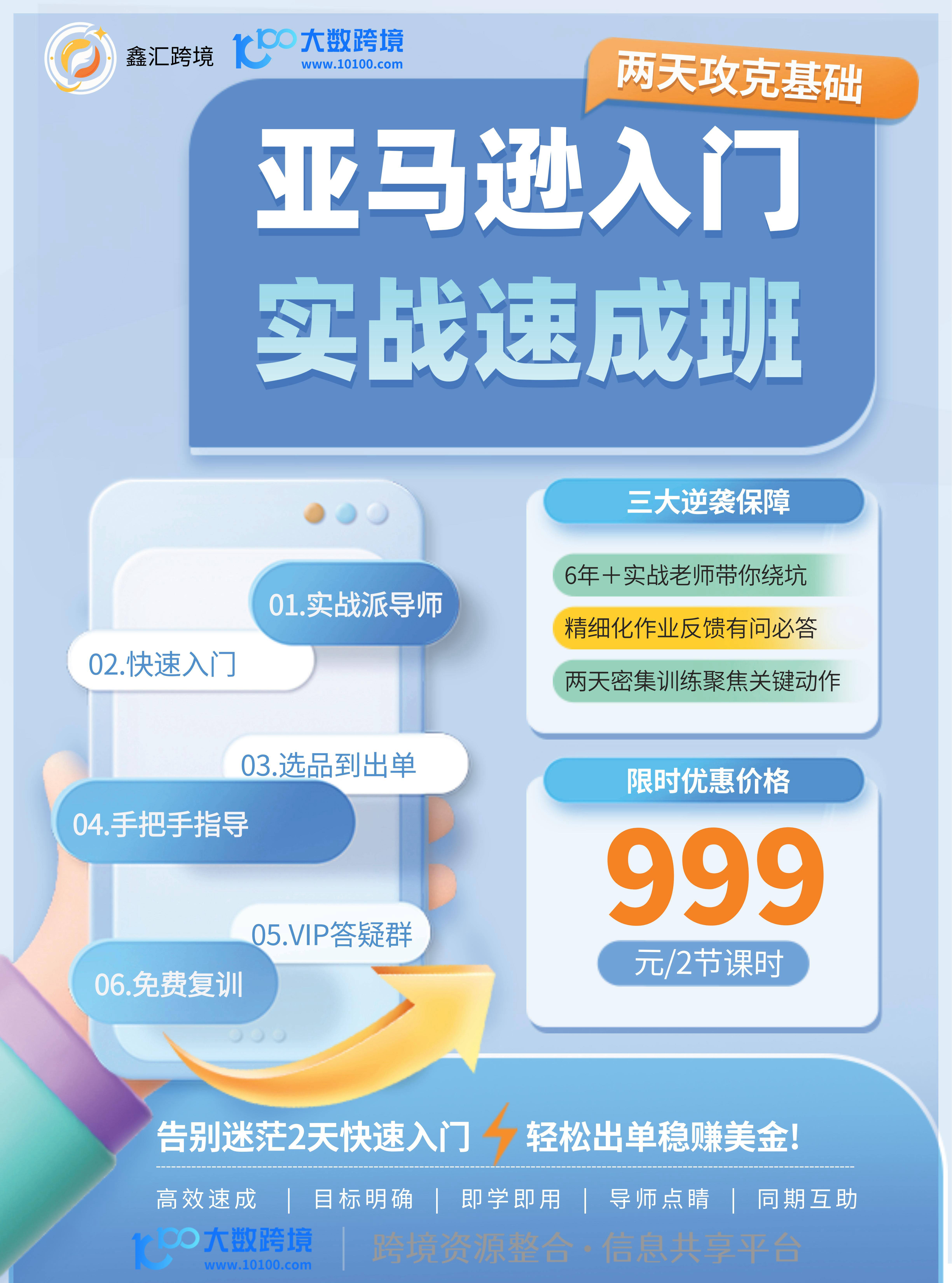 鑫汇跨境推出亚马逊入门实战速成班,专为跨境小白打造,2天密集训练攻克基础,帮你快速入门亚马逊,实现从选品到出单的全流程落地,轻松开启跨境掘金之路。