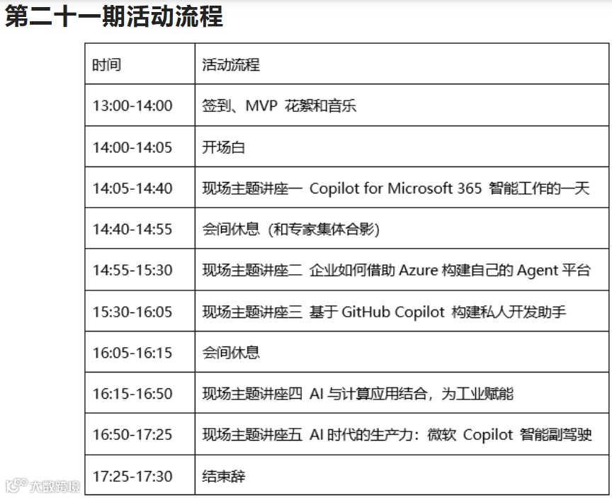 今年5月份Global Season of AI 2024(Beijing)首季体验营,请您来到微软(中国)总部,与微软原厂专家和微软 MVP 一起了解 AOAI 的最新进展,并动手尝试 Azure OpenAI 服务!同样,我们将在11月2日开启新的Season of AI,在本季更多的话题将体现你的完美Copilot支持上,不管是GitHub Copilot和Copilot Studio这样优秀的只能工具,还是Microsoft Fabric的Copilot和Microsoft 365 Copilot,以及Azure上构建自定义的Copilot等话题都有涉及。希望本次活动能够成为您在人工智能领域学术交流和技术应用中的重要一步,给您带来无尽收获。