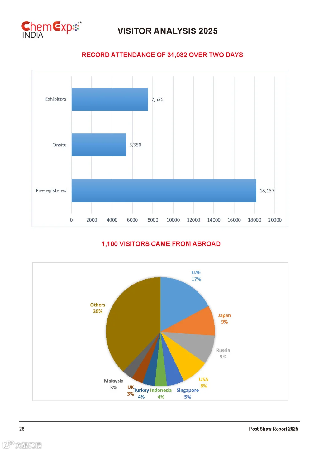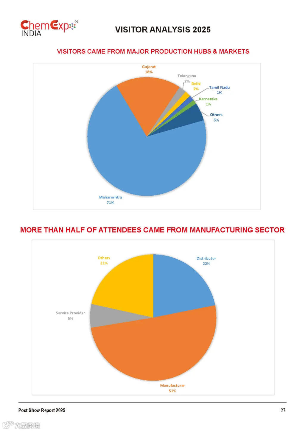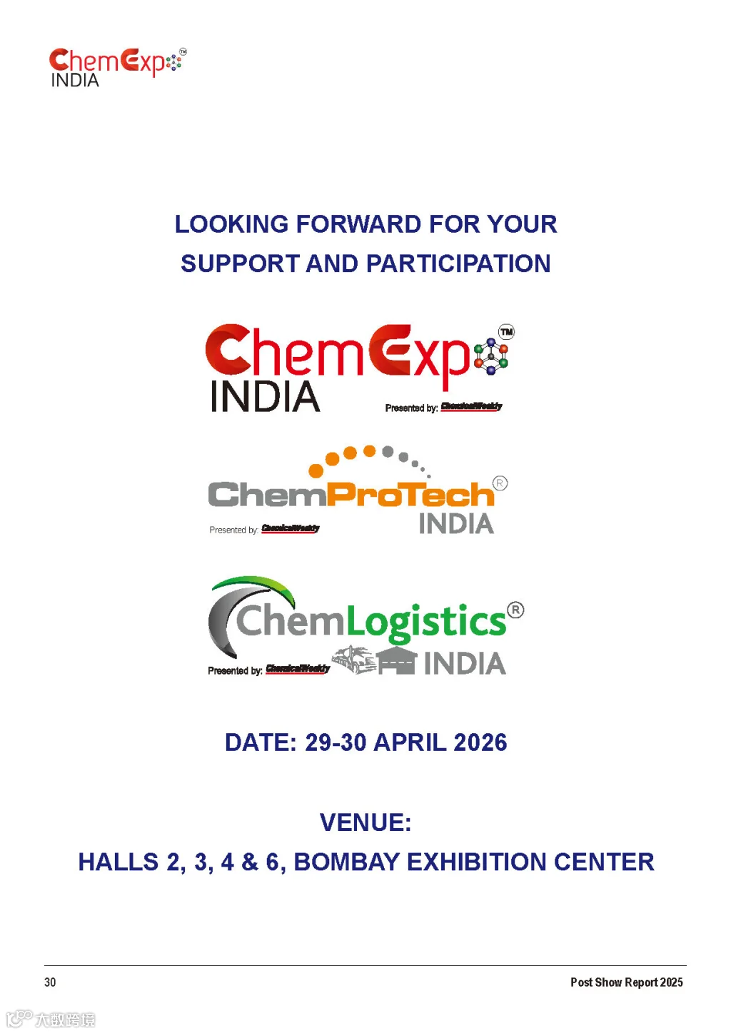 主办单位:ChemProTech India印度化工装备展(ChemProTech India )将在印度孟买举行。该展览会由Chemical Weekly主办,与印度精细化工展、印度化工物流展同期同地举办。上届展会共有556家企业参展,展出面积超30000平方米。为期两天的展会共吸引来自53个国家的31032名专业观众。展会同期还举办了多个专业性论坛。