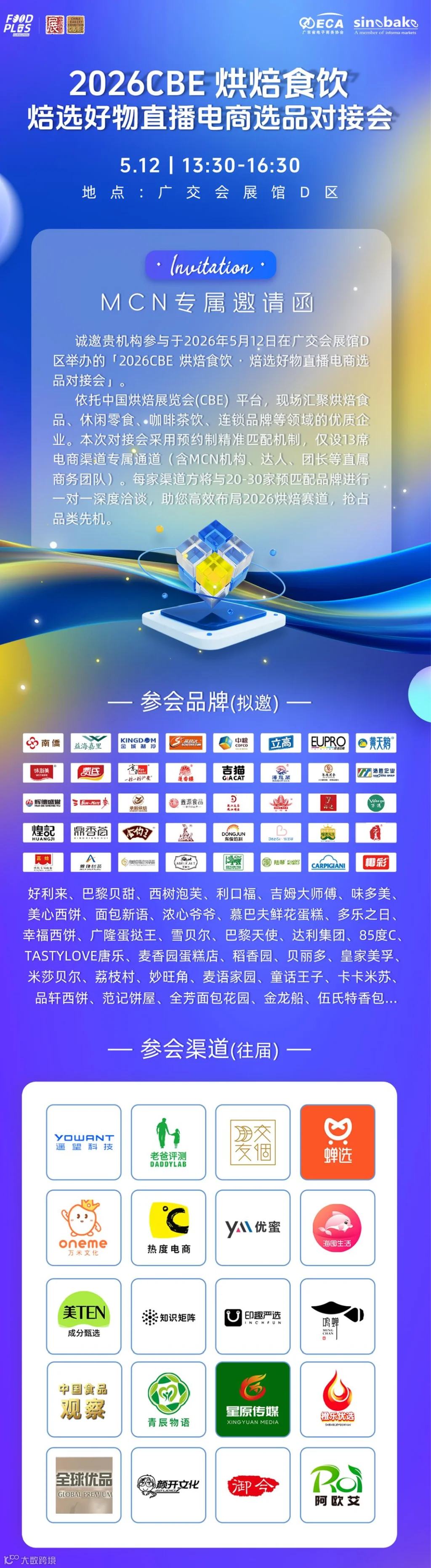 2026CBE 烘焙食饮 · 焙选好物直播电商选品对接会