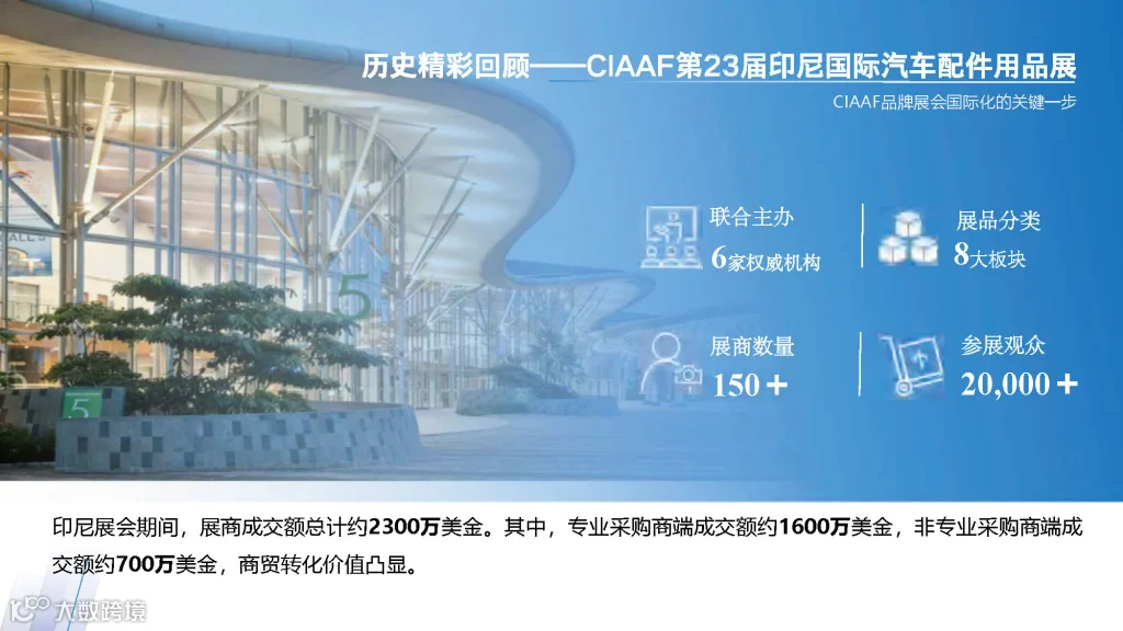 主办单位:依凯国际郑州汽车后市场博览会 (CIAAF)自2005年举办以来,每年定期于6月在郑州国举办,吸引超过3000多家汽车后市场企业参展,超过10万人次的海内外专业买家莅临展会,是一个基于实效的展览+会议+电商的全渠道实效型展览平台。刚过去的第22届郑州国际汽车后市场博览会,展区规模再度扩展,展会3天观众100,000人次,展会设置20余场高峰论坛,还有汽车改装,音响改装等巅峰赛事,与泰国,越南等国家,以及非洲中东等地区建立合作关系。