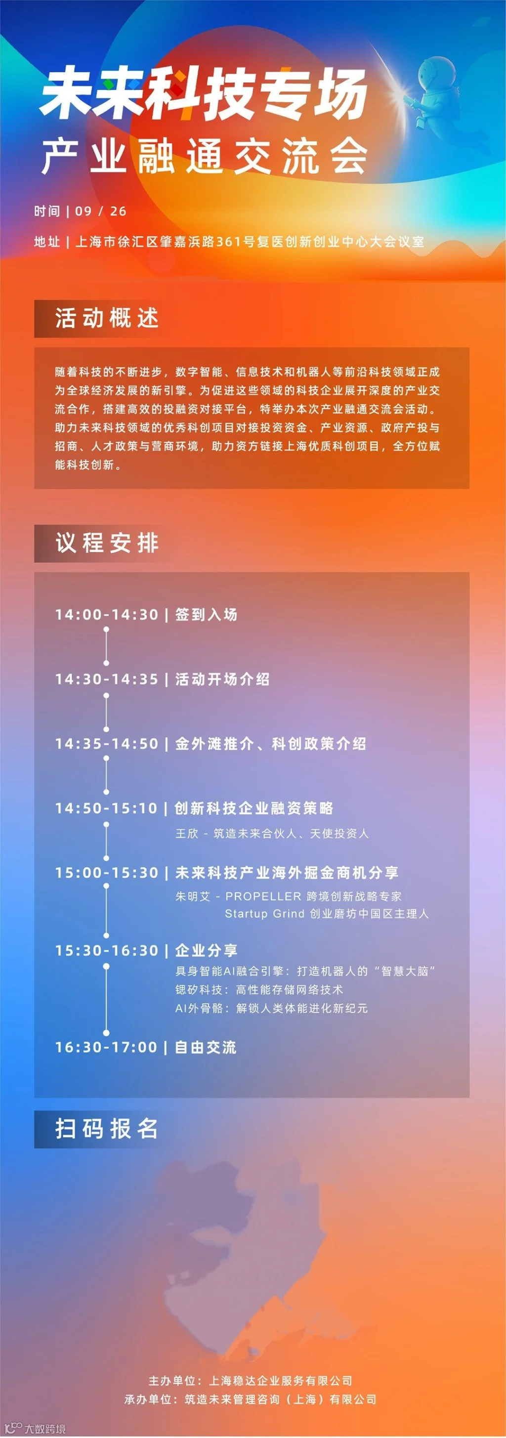 随着科技的不断进步,数字智能、信息技术和机器人等前沿科技领域正成为全球经济发展的新引擎。为促进这些领域的科技企业展开深度的产业交流合作,搭建高效的投融资对接平台,特举办本次产业融通交流会活动。助力未来科技领域的优秀科创项目对接投资资金、产业资源、政府产投与招商、人才政策与营商环境,助力资方链接上海优质科创项目,全方位赋能科技创新。