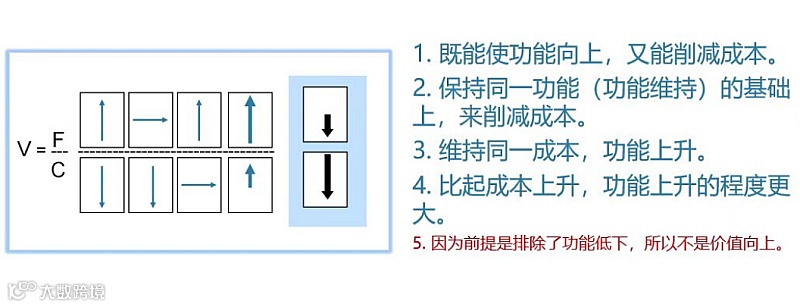 • 作为一项发源于通用电气(GE)的工具,价值分析和价值工程(VA /VE)已经演变成一套非常经典成熟的方法,它能够从生产制造环节沿着供应链逆向追溯到研发设计进行系统改善,在保证客户体验(客户感受的功能的保障)的前提下进行有效的成本节约。